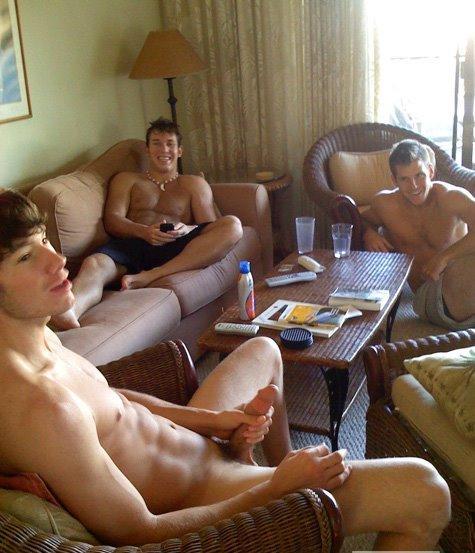 Sean (Orlando): Básicamente sólo interactuamos. Ya que somos los anfitriones, lo hacemos informalmente, «¡Ey! Bienvenidos a nuestra fiesta» y compartimos penes, y como están duros, los sacudimos un poco jugamos con sus bolas. Decimos, «¡Muy bien! Ey, bueno, parece que te estás divirtiendo. Muy bien, regresamos en un momento,” y pasamos al siguiente hombre. Circulamos.