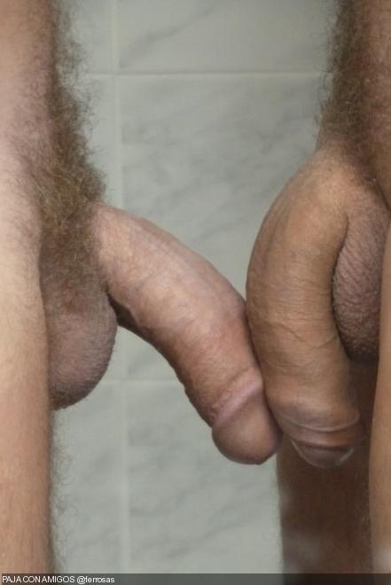Como tenía un vuelo que tomar en media hora, de inmediato miro a un chico en sus veintes con una gran verga parado cerca de una botella de lubricante en un pedestal. Tras mostrarnos mutuamente nuestros penes rígidos, subir una ceja y asentir con la cabeza, me le acerco, le digo un pequeño «Hola,» y empiezo a masturbarle su hermosa pieza colgante mientras nos besamos ocasionalmente. Lamo sus axilas y paso mis dedos por su cabello suave y algo largo, empujándolo hacia mí para poder meterle la lengua más profundo. Él manosea mi culo peludo y destruye mis pezones por completo. Me vengo en cuestión de minutos, manteniéndolo cerca mientras tiemblo, y mi leche escurriéndoseme por mi mano.