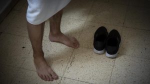 A la mañana siguiente desperté temprano, cogí mi toalla y fui a la ducha. Los baños eran comunes, con las duchas divididas por una pequeña pared que llegaba desde los pies hasta la altura del pecho. Tras ir usar el váter, darme una ducha y lavarme los dientes, volví a la habitación liado con la toalla. Entré de nuevo sin dar la luz por no molestar, pero cuando cerré la puerta escuché una voz grave: